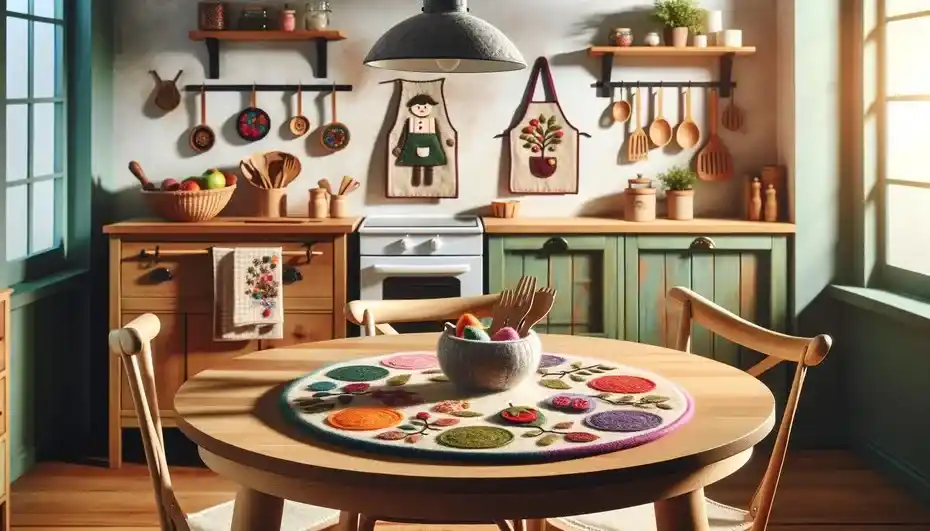 Além disso, o artesanato em feltro oferece uma série de vantagens práticas. O feltro é um material durável e resistente, ideal para itens de uso diário na cozinha. Ele é fácil de limpar e pode suportar o desgaste constante, tornando-se uma opção excelente para tapetes de mesa, sousplats e descansos de panela.