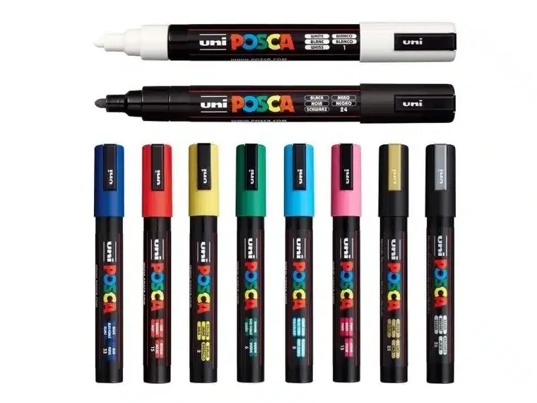 - Versatilidade: As canetas Posca são multiuso e podem ser aplicadas em uma variedade de superfícies, como papel, tecido, vidro, plástico, madeira, cerâmica, entre outras.
