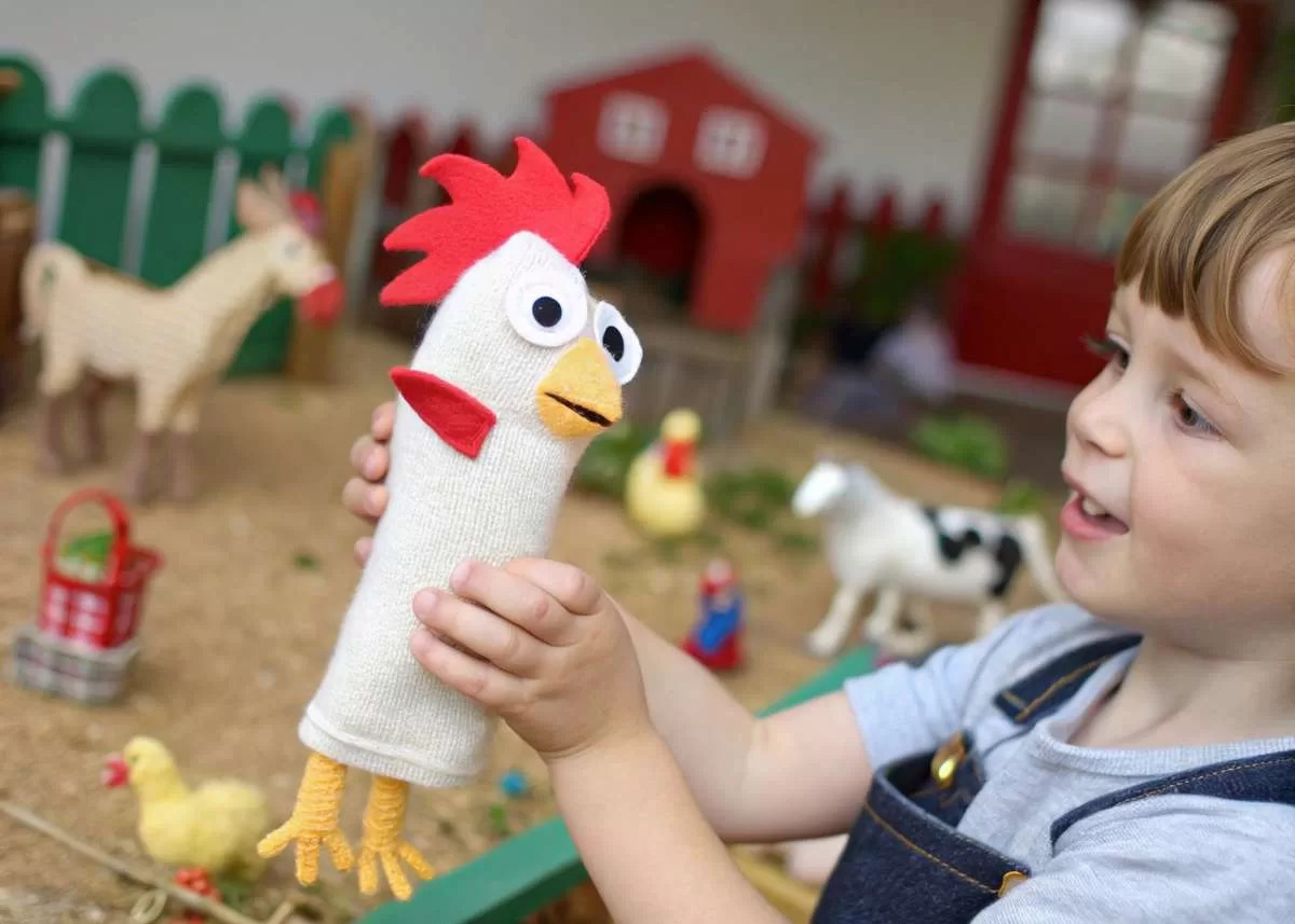 Que tal criar um galinheiro inteiro com fantoches de meias? Você pode fazer uma galinha, um galo, um pintinho, um porco, uma vaca, um cavalo e outros animais da fazenda. Use diferentes cores e estampas de meias para criar personagens únicos e originais.