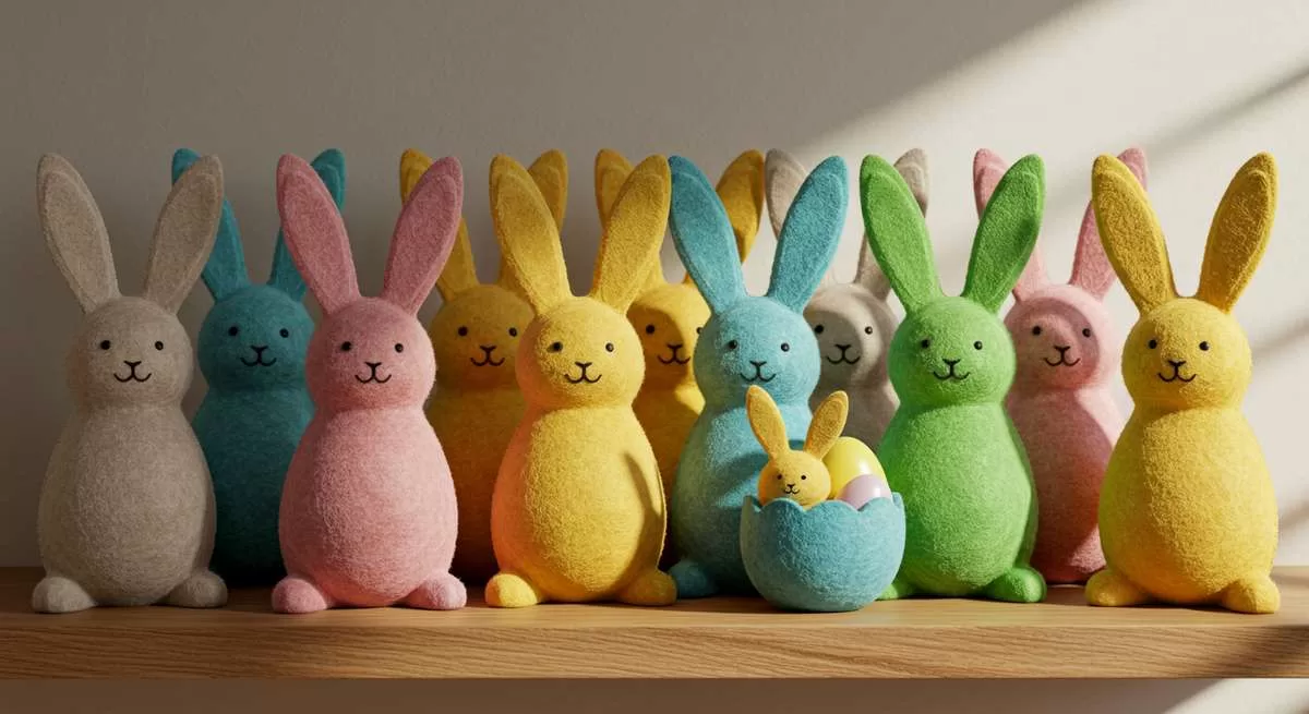 - Feltro: O feltro é um material fácil de trabalhar e perfeito para criar coelhos, ovos e outros enfeites fofos.
