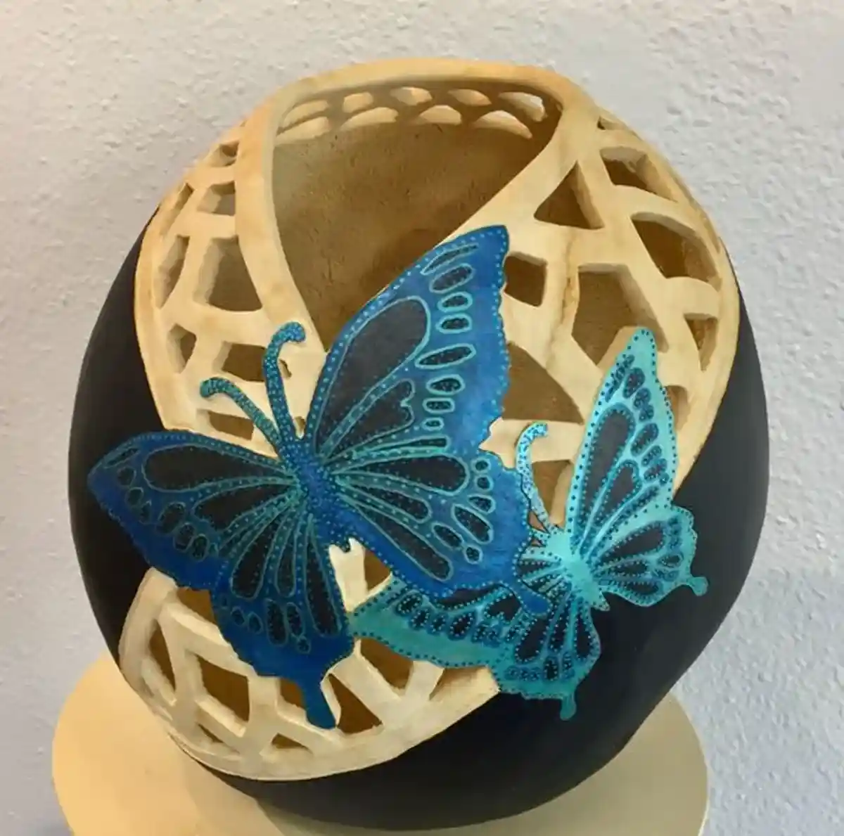 Depois de concluir o entalhe, muitos escultores em cabaças optam por adicionar cor à sua obra. A pintura é uma parte essencial do processo, pois realça os detalhes da escultura e adiciona profundidade à peça. Os pigmentos são aplicados com cuidado, muitas vezes seguindo um esquema de cores específico para criar um impacto visual impressionante.