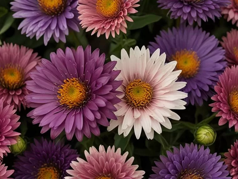 As flores aster apresentam uma fascinante variedade de cores, tamanhos e formatos. Algumas das principais variedades incluem: