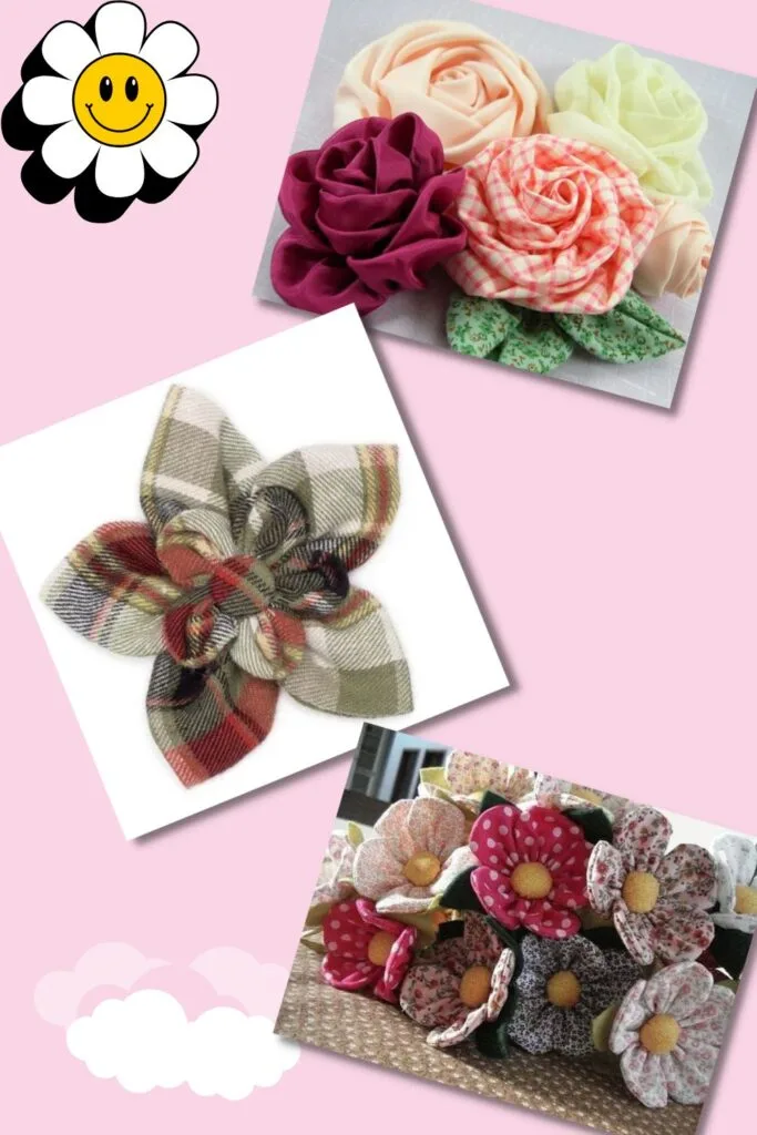Acessórios de moda: Que tal adicionar um toque único ao seu visual? Flores com tecido podem ser transformadas em broches, tiaras, presilhas de cabelo e até mesmo em apliques para roupas. Você será notada por sua originalidade e estilo.