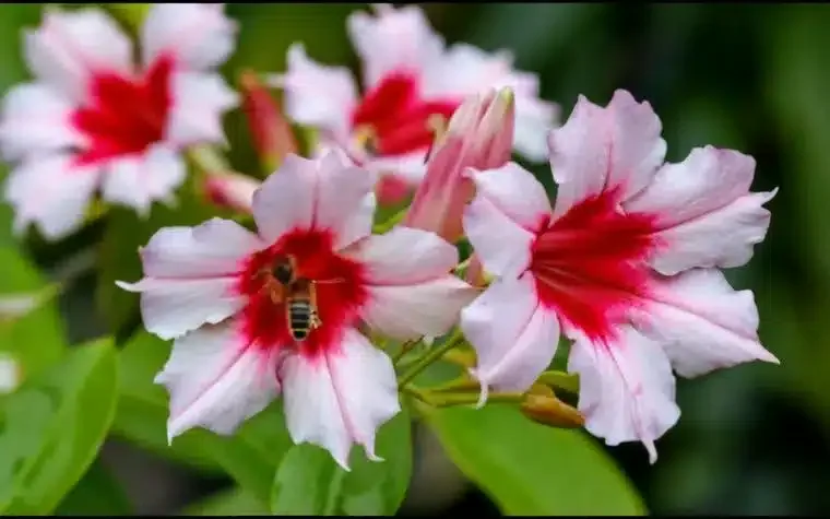 - Mandevilla sanderi (Jasmim Mandevilla): As flores brancas e rosadas são um deleite para essas abelhas.