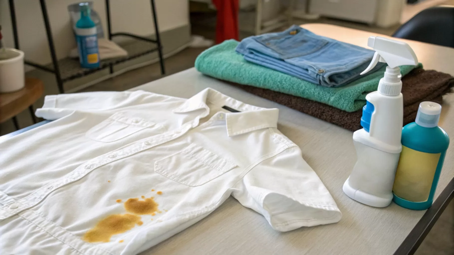 Antes de usar produtos de limpeza, testa em uma área pequena. Isso evita danos ao tecido. Depois, enxágue bem a peça para tirar todos os resíduos. Isso ajuda a evitar que a mancha piorie.