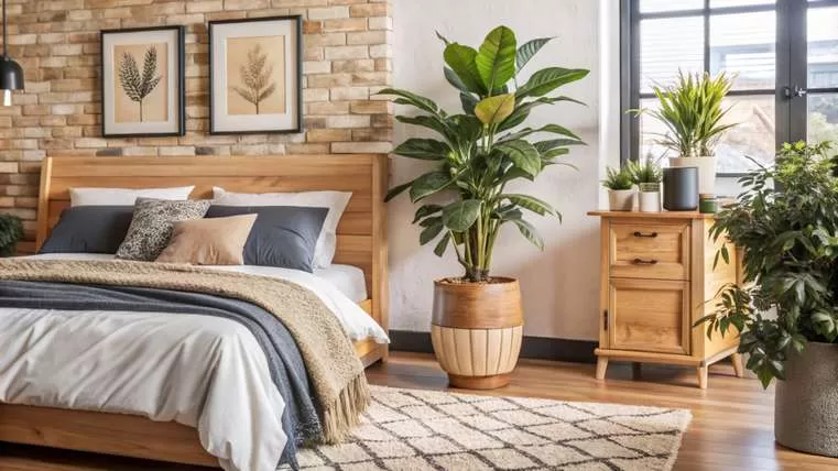 Nos quartos, o Lírio da Paz e a Jiboia são ideais. Eles não só purificam o ar, mas também mantêm a umidade saudável. Esses lugares são fechados, então essas plantas são essenciais para o bem-estar.