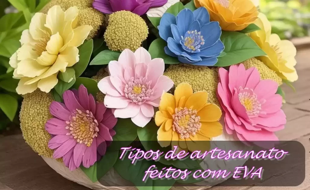Diversas peças podem ser produzidas com EVA, como flores artificiais, porta-retratos, imãs de geladeira, cadernos e marcadores, além de itens para pendurar na parede como molduras e usar na decoração. Veja abaixo alguns tipos de artesanato feitos com EVA para usar como inspiração.